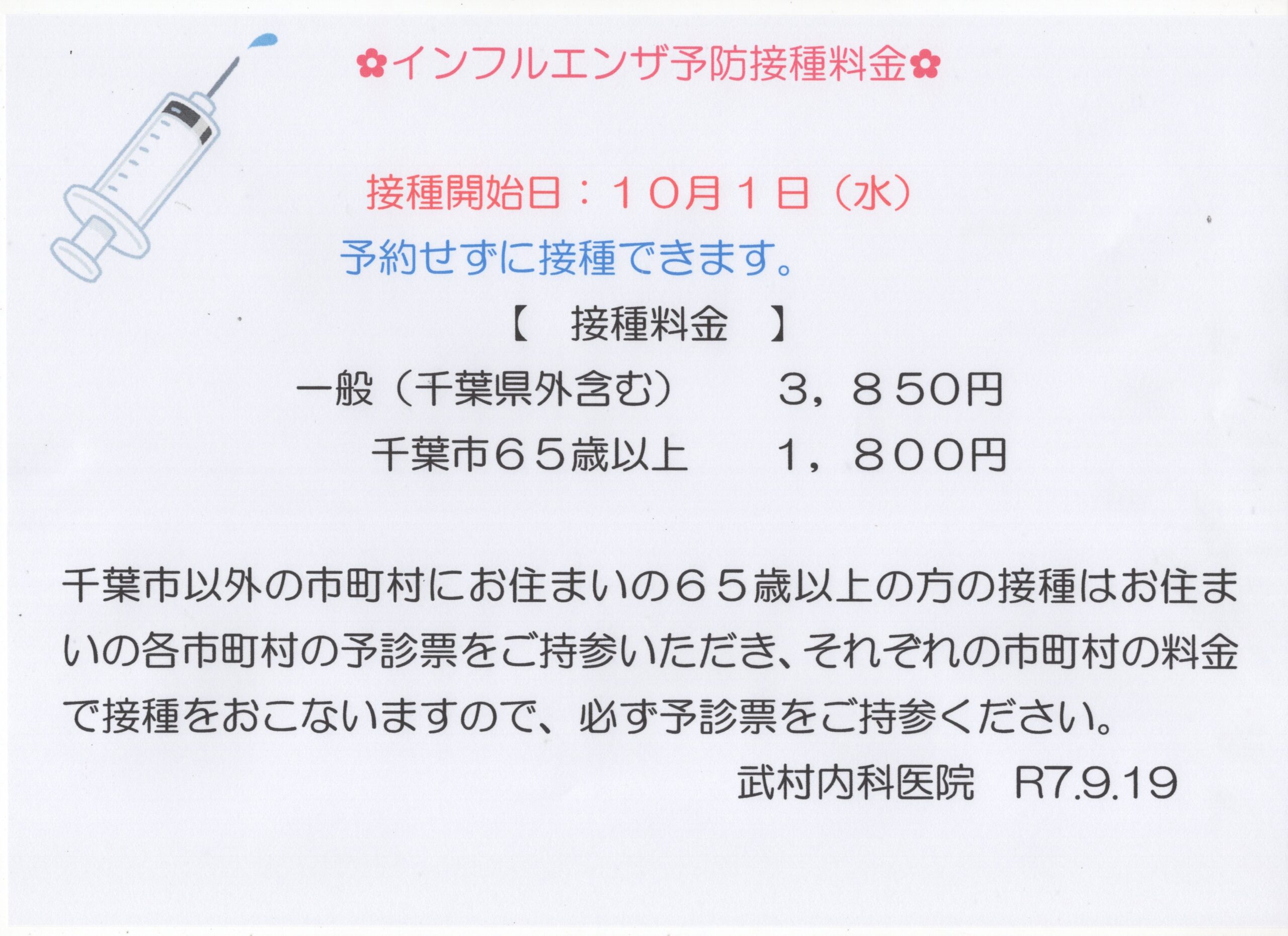 インフルエンザ予防接種について